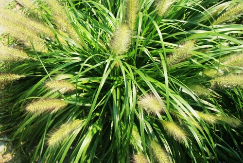 狼尾草(Pennisetum alopecuroides (L.) Spreng),為禾本科多年生草本植物。多生于海拔50—3200米的田岸、荒地、道旁及小山坡上。對土壤適應性較強,耐輕微堿性,亦耐干旱貧瘠土壤。狼尾草生性強健,萌發力強,容易栽培,對水肥要求不高,少有病蟲害。多年生狼尾草根系較發達,具有良好的固土護坡功能。其全草、根或根莖均可供藥用,其中,全草可清熱、涼血、止血,根或根莖清熱解毒。此外,它還是一種飼用植物和觀賞植物。由于其固碳同化能力強,被列為能源植物之中。