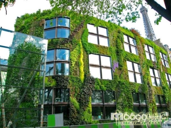 這個植物墻大小為1500平方英尺,包含了有250種植物。每平方英尺僅材料耗資680美元。來自法國凱布朗利博物館,里面展示的是來自非洲、亞洲、大洋洲和美洲的藝術品。該建筑是有建筑師Jean Nouvel建造,外部的垂直花園景觀是有Patrick Blanc和Gilles Clément設計建造。