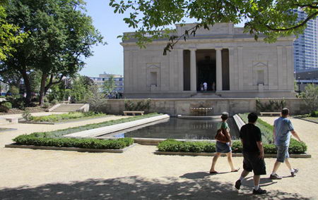 中國(guó)風(fēng)景園林網(wǎng)訊 OLIN設(shè)計(jì)公司近期重建了位于費(fèi)城本杰明富蘭克林公園大道的羅丹博物館周邊公園景觀。復(fù)興工程在1929年P(guān)aul Cret和Jacques Gréber規(guī)劃的基礎(chǔ)上進(jìn)行改進(jìn)和擴(kuò)大,特別關(guān)注了羅丹博物館與富蘭克林公園大道的關(guān)系。羅丹博物館花園復(fù)興工程是費(fèi)城博物館藝術(shù)大師計(jì)劃的一部分,也是重新設(shè)計(jì)改造富蘭克林大道的宏偉工程的一部分。整個(gè)的復(fù)興工程有賴于OLIN設(shè)計(jì)公司、賓夕法尼亞州園藝協(xié)會(huì)和費(fèi)城公園休閑部共同努力。