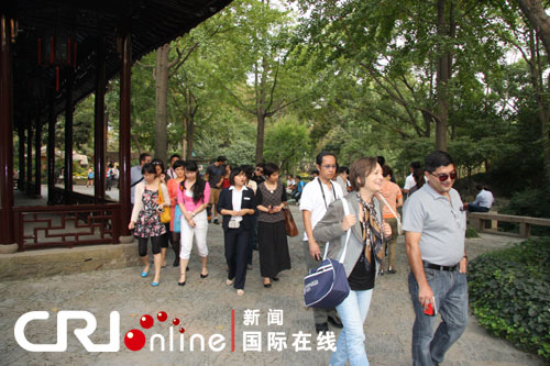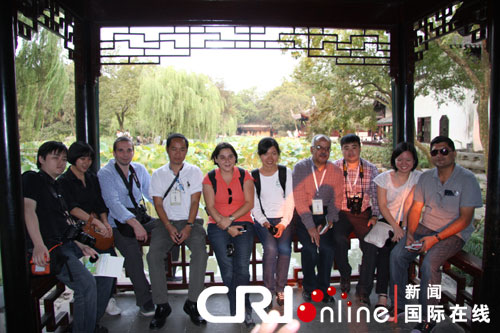 由中國國際廣播電臺組織的“外媒記者城市行”參訪團9月25日游覽了中國四大名園之一的蘇州拙政園,領略蘇州園林迷人的藝術魅力。