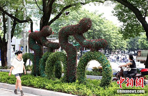 福州市區(qū)街頭出現(xiàn)“騎車人”立體植物造景