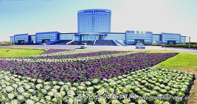 黨政機關辦公中心廣場上剛剛植入的羽衣甘藍.