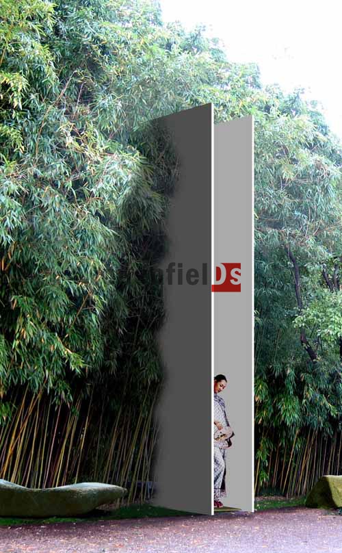 設(shè)計(jì)的中心是進(jìn)入竹林的道路入口,兩片高4m的白墻平行插入密集的竹林,白墻上總共分別對(duì)稱開(kāi)有8扇長(zhǎng)窗,竹枝深入長(zhǎng)窗,如同一幅幅竹子的畫(huà)卷,竹路沿著白墻間隙筆直的進(jìn)入竹林,過(guò)白墻后分別向兩個(gè)方向蜿蜒曲折的延伸,所謂是一步一景。為了不影響竹路下方竹筍的生長(zhǎng)和達(dá)到自然滲水的作用,竹路路面材料為鋼網(wǎng)狀;同時(shí),竹路加有護(hù)欄,也起到對(duì)之林的保護(hù)作用,防止游客進(jìn)入竹林。竹路整體思想體現(xiàn)中國(guó)文人意境精神,使歐洲參觀者在他們本土,不僅僅可以看到珍惜的竹子,同時(shí)也可以體會(huì)竹子背后所隱含的中國(guó)精神。