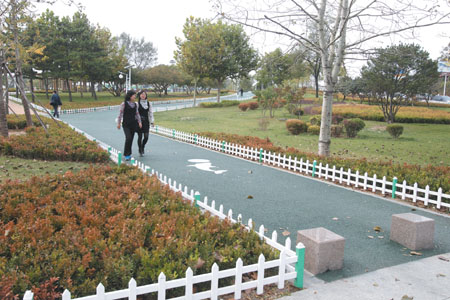 就此,記者采訪了市風景園林處相關負責人。該負責人介紹,此次改造后,公園形成了新的格局:由8688平方米中心廣場、人造戲水區和兩條橫向景觀道路組成。觀海廣場和沙灘是整個公園觀賞海景的主要區域,廣場的設計以小提琴形狀為主要元素,突出了觀海的動態形象。