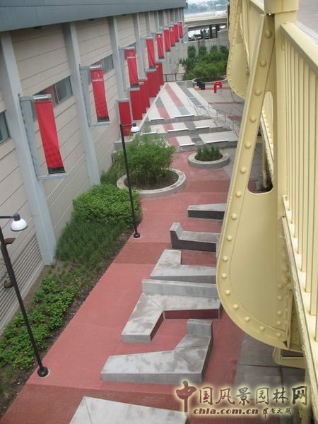 中國風(fēng)景園林網(wǎng)訊 美國肯塔基州路易斯維爾第二街橋(Second Street Bridge)街景項(xiàng)目由CARMAN公司進(jìn)行景觀設(shè)計(jì),萊尼.史溫丁格燈光工程公司(Leni Schwendinger Light Projects)進(jìn)行燈光和色彩方案設(shè)計(jì)。第二街橋下方的道路轉(zhuǎn)變成為一個(gè)廣場——有多種植物,座椅和行人散步空間,可以進(jìn)行節(jié)日慶祝活動(dòng)——上面燈光閃爍的橋頂掩蔽著下方的空間。萊尼.史溫丁格燈光工程公司設(shè)計(jì)的街景包括了沿克拉克紀(jì)念大橋(Clark Memorial Bridge)的輔路和空地。這是一座歷史悠久的懸臂式桁架橋,又稱第二街橋(Second Street Bridge),跨越了美國中東部俄亥俄河(Ohio River)。