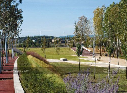 西班牙加泰羅尼亞赫羅納省(Girona)的維拉布拉瑞伊克斯鎮(Vilablareix)正在為其南部的老城區籌劃一個大規模的遠期發展計劃。魯伊桑切斯建筑事務所接到了塑造新區主要公共空間的委托,這其中包括一個線狀連接的廣場系統—這將在老城區和新的擴張區之間構建起新的形象;以及一座公園—這將成為城鎮新區一個廣闊、綠色、高質的空間。該地區生產性作物景觀的特征就是谷物農田的拼接斑塊:以線性的樹木為邊框,結合其自身高度來凸顯田野的平坦。河岸植物呈波浪狀蜿蜒于這些谷物之間,作為背景的它們道出了總是與之相伴的水流的蹤跡。