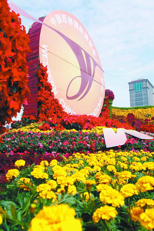 為展示成都城鄉環境綜合治理成效,以姹紫嫣紅、百花盛開的金秋十月城市景觀喜迎八方嘉賓,針對西博會,市林業和園林局精心設計了植物雕塑11組,以“世紀蜀門”“西博迎賓”“喜迎盛會”“西部歡歌”“花扮蓉城”“蓉城盛會”等為主題,矗立于天府廣場、世紀城北路口、迎賓大道、孵化園路口、錦江大橋等主要節點,并在人民南路、二環路至三環路主要橋面、天府大道等路段擺放色彩艷麗的巖菊,輔以比利時杜鵑、五色草等色彩繽紛的盆栽、地栽花卉。多種植物景觀相互映襯,烘托出西博會“誠邀四海嘉賓,喜迎八方來客”的歡慶氣氛。
