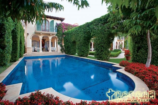 戶主想要的別墅具有迷人、浪漫、神秘古老世界的風格。景觀事務所Sanchez & Maddux設計了這個具有意大利風格的位于南佛羅里達的別墅,通過使用異國植物來顯現出歐洲古典園林的風格。他們稱這種設計風格為"文明的叢林",這個名字也是去年出版的一本關于他們作品的書的標題。