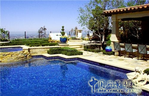 游泳池5/8部分采用價(jià)值10萬美元的藍(lán)色馬賽克裝飾