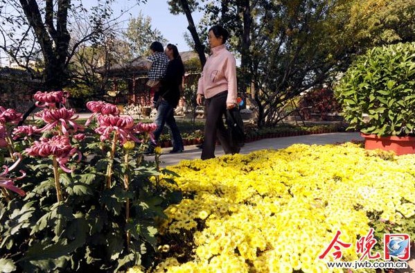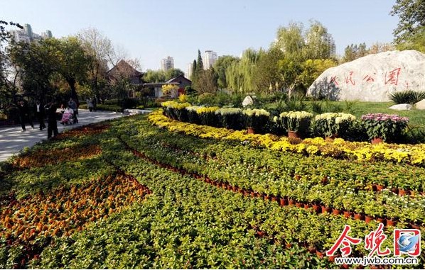 氣爽的深秋時節。圖為鮮花裝扮園內。王欣鵬 攝