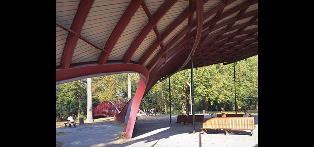 大橋附近設(shè)置的濱水碼頭可使游人得到悠閑的濱水體驗(yàn)。