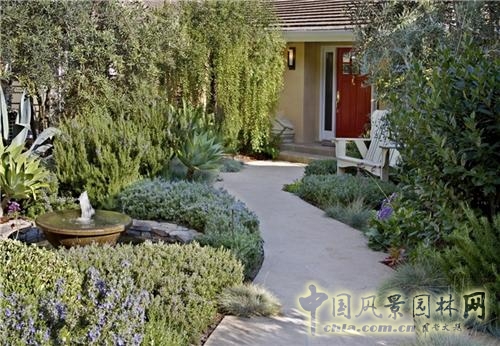 項目實施:為了創造親密氣氛的花園,Aldrich增加了原有花園墻體的承重能力。這個新的、更承重的墻用燈、沙石和石頭裝飾。Aldrich通過利用樹和植被的大小和色彩的差異,合理地劃分庭院,這樣在不影響庭院大小的基礎上增加了組織結構的情趣。主要用到三種植物是迷迭香、澳洲迷迭香和匙葉草屬植物。