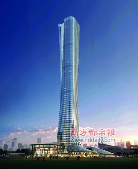 該方案將為南站東北側(cè)的兩地塊整體考慮,分別為350米和300米的超高層雙子塔,兩幢塔樓朝向南站入口方向形成歡迎之手勢,共同構(gòu)成了南站核心商務(wù)區(qū)的門戶形象。其中,主樓的建筑形態(tài)借鑒南方地區(qū)的春筍形象,螺旋狀線條上升的同時標(biāo)準(zhǔn)層平面縮進(jìn),獲得了優(yōu)美建筑形態(tài),并降低了超高層的風(fēng)荷載,有利于超高層建筑的結(jié)構(gòu)穩(wěn)定性。