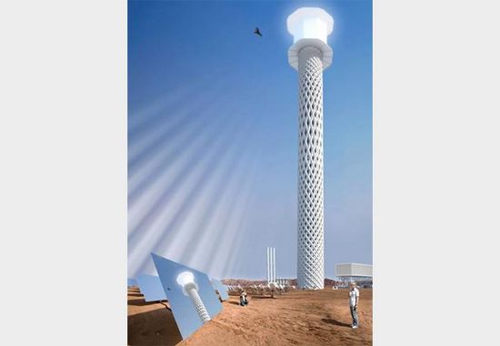 總部設(shè)在蘇黎世的RAFAA建筑事務(wù)所受“亮源能源公司”(BrightSource Energy )的邀請(qǐng),參加一場(chǎng)設(shè)計(jì)競(jìng)爭(zhēng)——為一個(gè)發(fā)電能力為392兆瓦的太陽能發(fā)電廠設(shè)計(jì)三個(gè)高度為225米的高塔,利用鏡子聚焦太陽光。