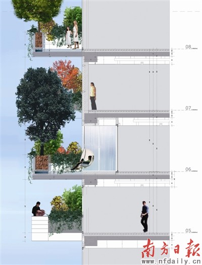 目前在廣州等城市中新建的低碳節能建筑,大多以使用低碳建材、風能發電、太陽能供熱等技術性減排手段為特點,而“空中森林”的理念卻以更純粹樸實的手法來讓人類居室回歸自然。