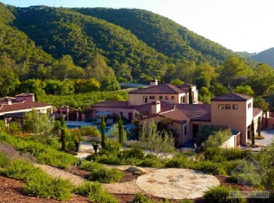 周圍公路被抬高后,住戶非常渴望能建造一個花園保護自己的隱私。因此矮墻,狹道,植物隔離帶被修建起來,遮蔽住宅。住宅位于美國加州,原名Avila Valley Estate(阿維拉谷住宅),前面的車道被重新設計,增添一個停車場,方便來客停車。