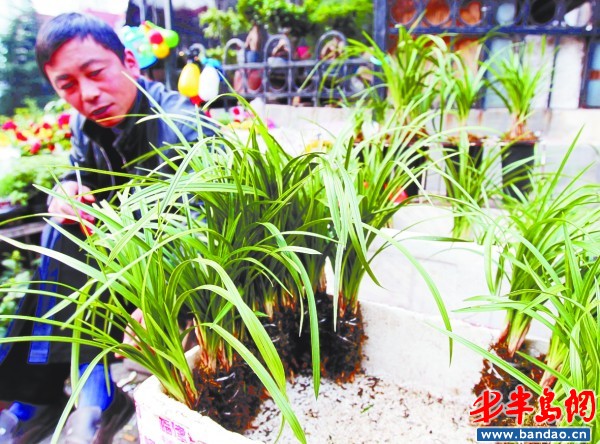 11月21日,南山花卉市場旁,一名攤主正在銷售蘭花。每年春節(jié)前夕,很多市民喜歡選購一些花卉布置家居,而蘭花花期恰好在春節(jié)期間,所以也叫春節(jié)蘭花,目前市場上的品種以惠蘭為主,每束價格12元左右。