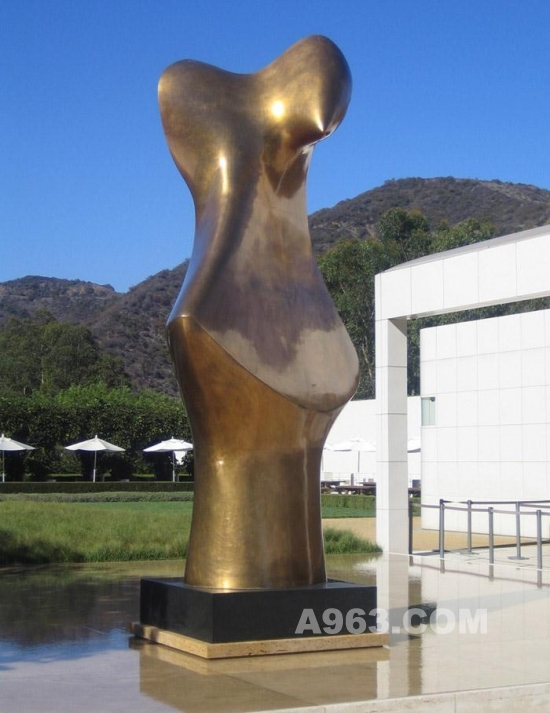 ▲無邊框鏡面水池與Henry Moore的雕塑 ‘Bronze Form’.