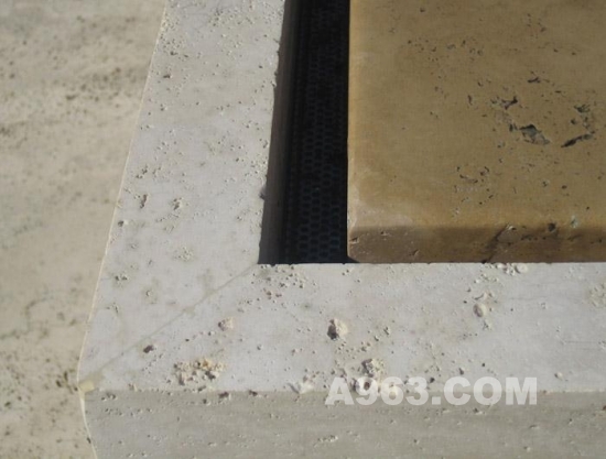 ▲水池邊緣細部,水改變了洞石的面貌。