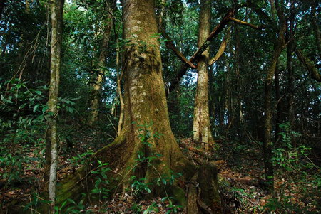 近日,西雙版納植物園朱華研究員和周仕順實驗師對位于中-緬國境線上的云南孟連大黑山考察過程中,發現在其海拔1900米以上地區存在大面積的原始中山濕性常綠闊葉林。