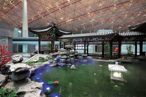 Beijing CapitalInternational Airport由Norman Foster 設(shè)計的3 號航站樓被認為象征著中國在世界舞臺的崛起。近兩英里的長度幾乎可以算是世界上最長的航站樓,同時她又比倫敦希斯羅機場5 個航站樓合起來還大,創(chuàng)下這樣又長又大的紀錄是中國人最擅長的手筆。其內(nèi)部細節(jié)也借鑒了中國皇家花園的設(shè)計,既現(xiàn)代又傳統(tǒng)。控制塔的屋頂是紅色,老外們又該說了,這是中國文化中象征幸運的顏色。