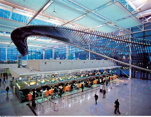 Munich Airport德國機場總是喜歡吹噓自己的天井和拱頂設計,有時幾乎把人帶進老式維多利亞風格的火車站,但其又不落伍。尤其是2 號航站樓在功能和美學上都做得十分出色,延續了天井的舒適感。