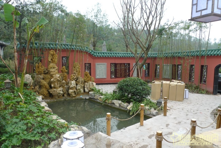園林內設置多樣水體形式:瀑布水潭、放大水面、亂石跌水、景觀小溪、亂石跌水。并形成水系生態循環系統,使水系具備自凈功能,避免水體富營養化。