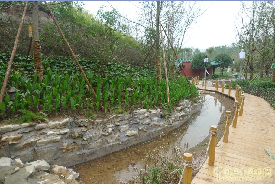 瀑布(提高水體曝氣量增加水體含氧量)、湖面(降低水流速度起到沉淀作用)、小溪(利用變化的河床和岸線提高水系自我交換能力)、濕地(利用濕地周邊的植物和微生物吸收水中微量元素凈化水體)、亂石跌水(提高水體曝氣量和分子活力)最終形成完善的水系循環系統。