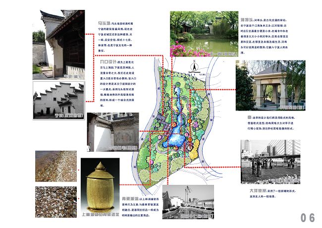 寧波園描繪出一幅寧靜、恬美的水墨江南畫卷。設計師將丘陵、水、亭、石、植被等濃縮于此,在不大的范圍內巧用傳統的造園手法,因地制宜,巧用地勢,合理布置亭、臺、橋、水榭等景觀,使 "憶明州"以一幅水墨山水畫的方式展現在大江之濱。寧波園的設計使自然景觀與歷史景觀交相輝映,古代文明與現代文明相互滲透。游人游歷其中,既可享受大自然的美景,又可感受寧波古今文化的傳承與變遷。
