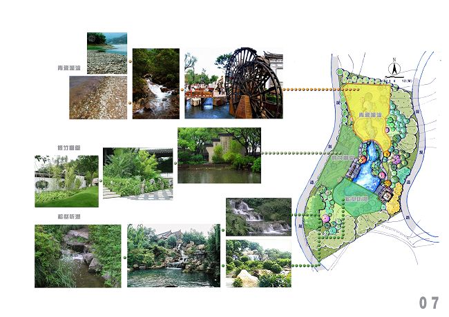 植物景觀的設計,以自然式為主,突出自然群落之美,與傳統建筑交相呼應。在因地制宜的基礎上,突出寧波特有的鄉土樹種和珍貴樹種。既體現寧波特色,又確保綠化檔次。因地制宜體現在:選擇容易在重慶生長的樹種,確保樹木能長期存活,從而為重慶市民留下一個永久的優美的"寧波園"。 體現寧波城市園林風貌的特色樹種,如香樟、山茶、雷竹、繡線菊等等。