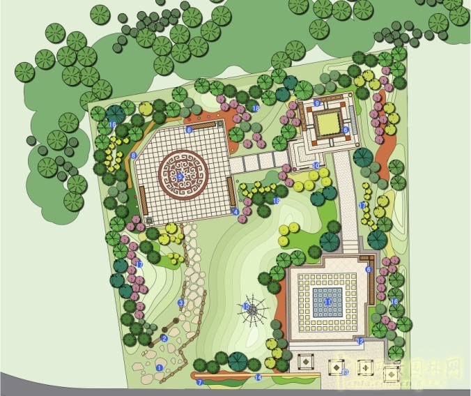 在進(jìn)行山地植物配置時應(yīng)注重保護(hù)原有的天然植被,人工植樹以鄉(xiāng)土樹種為主,針闊葉混交,密植成林,體現(xiàn)濃郁的山林氣息。同時借山嶺的自然地勢劃分景區(qū),每個區(qū)域突出一兩個樹種,形成各具特色的不同景區(qū),豐富景觀層次。【詳細(xì)】