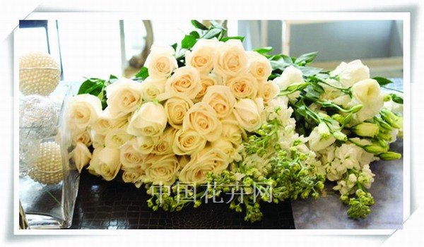 準(zhǔn)備花材:芬得拉玫瑰、白色紫羅蘭、白色桔梗。