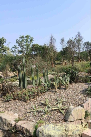 巖石花園:以巖生植物和特色巖石展示為主題,選擇抗旱性強的巖生植物對山體起到護坡、固土的作用。同時就地取材,采用當地特色巖石來重塑地形,營造獨具地域特色的巖石臺地花園景觀。