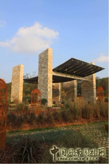 觀賞草花園:以觀賞草植物展示為主題,觀賞草植物景觀獨特,養護成本低,發展前景廣闊。同時結合銹鋼板藝術景墻展現滬上人文歷史風情。