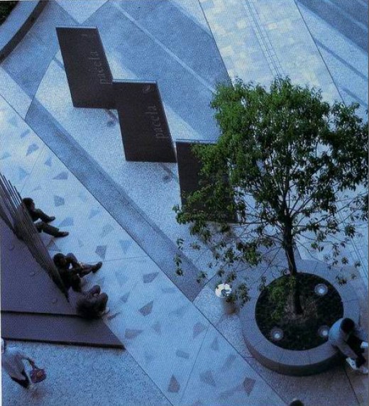 廣場上立有黑色石板,使開放空間中也有隱秘性