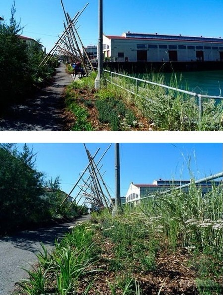 如果你上周末在WestCoastGreen的話,你就會明顯注意到沿著水邊排布的一系列優(yōu)雅的竹子結(jié)構(gòu),它們由美麗的自然景觀環(huán)繞;但你可能沒有留意的是,這些結(jié)構(gòu)實際上是用來支撐沼澤草的懸浮花園,還是預(yù)防和修復(fù)雨水徑流的一種策略。