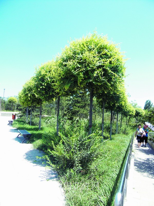干高50厘米,其上嫁接四五個分枝的金葉榆,精心養護管理嫁接一年后蓬徑能達到1米,這種苗木在工程上片植時下半部透氣性好,比叢生苗長勢更好,是近年天津市場頗受歡迎的產品類別。【詳細】