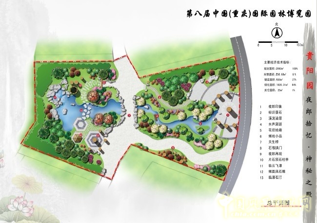 中國風景園林網訊 中國國際園林博覽會是目前我國國內規模最大、規格最高、內容最豐富的風景園林行業綜合性盛會,每兩年舉辦一屆。城市展園肩負著宣傳城市特色、提高城市知名度的重任,因此是歷屆博覽會的重點內容。按照博覽會的安排,貴陽展園占地面積2450平方米,以夜郎古國人文風情為設計要素,以神秘的特色石雕、石刻和石亭營造主題景觀,融合多種造景手法配以小溪、霧噴以及香樟、馬櫻杜鵑、紅豆杉、珙桐、慈竹、琴絲竹等多種貴州本土植物,闡述了古夜郎人與自然和諧共生的生態理念,向游人展示綠意盎然、和諧美好、具有貴州特色的山水人文風景。