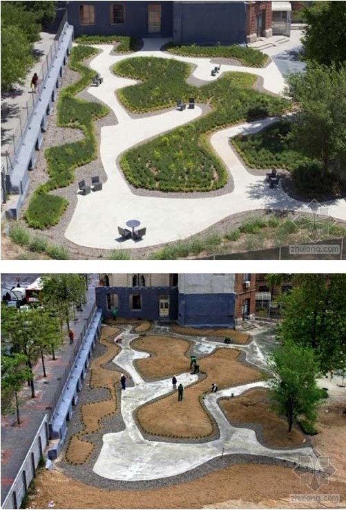 在設計師眼里,花園就是人類操控的自然,它通過找尋自然的紛繁復雜與人工雕琢的干凈統一之間的平衡來展示美麗。通過植物設計和道路的分布,設計師不斷探討如何增強自然和人工之間的反差。這個花園就像一個巨大的涂鴉,一系列不同顏色的“疹斑”穿插在蜿蜒的小徑中,將三種組成部分清晰地展示出來:植物,排水系統,道路。