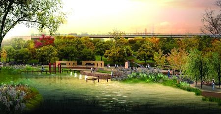 新新盤溪河濱公園將打造為以生態防護、運動休閑、濕地游賞為主要功能的城市濱河帶狀公園。最大限度的發揮河流的生態、環境和社會效益,打造一片新的城市綠脈。