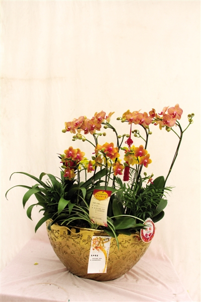 福滿乾坤(由蝴蝶蘭、鳳梨、粉冠軍、報春、蕨類、常春藤組成)