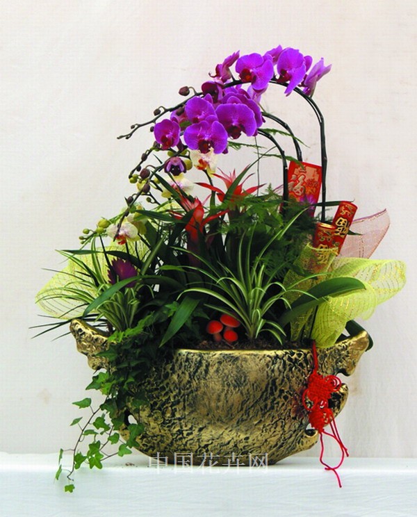 產(chǎn)品組成中,盆器需100元;大花蝴蝶蘭35元/支,需3支;迷你蝴蝶蘭25元/支,需3支;鳳梨30元/盆,需3盆;金邊蘭6元/盆;文竹6元/盆;長春藤3元/盆;另需輔助資材20元左右,包括爆竹、蘑菇、絲網(wǎng)、緞帶等裝飾品,成本總計僅需400元,市場零售價為600元以上。