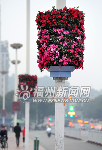 福州花箱掛到道路欄桿上 25萬盆鮮花喜迎新春
