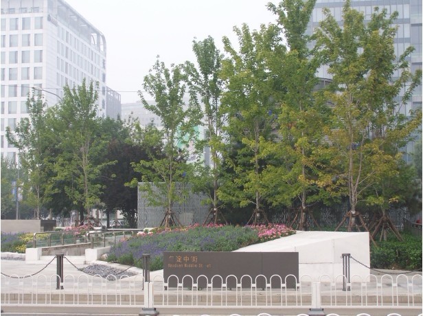 中關(guān)村西區(qū)綠化景觀提升工程屬于綜合性園林綠化工程,項(xiàng)目總面積1.6公頃。項(xiàng)目地點(diǎn)位于海淀區(qū)中關(guān)村西區(qū),西起蘇州街,東至中關(guān)村南大街,北至北四環(huán),南至海淀南路。工程主要包括土方工程、土壤改良、綠化移植及種植、廣場鋪裝、景觀小品、景觀照明等工程項(xiàng)目。栽植名貴樹種:銀紅槭48株、大規(guī)格喬木:銀杏360株、懸鈴木256株、元寶楓16株、異形油松7株、白皮松4株、饅頭柳6株、灌木:王族海棠351株、玉蘭15株、臘梅2株、碧桃51株、早園竹388墩、色帶:大葉黃楊114814株、小葉黃楊2340株、金葉女貞22734株、黃楊球3株、鳳尾蘭8株、冷劑型草1300平米。土建安裝:花崗巖樹池270套、混凝土樹池342套、混凝土磚鋪裝160平米、花崗巖鋪裝80平米、花崗巖座凳24個。工程開工日期為2010年5月15日,竣工日期為2010年6月20日,工期為37天。