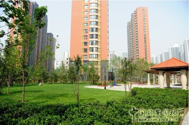 豐和園小區基礎設施改造工程總面積約3.9萬平米,其中綠化面積約2.4萬平米,土建鋪裝等約1.5萬平米,是一項較為綜合的綠化工程,工程內容涉及到綠化種植,崗亭、景亭、花架、景觀水池、噴泉、雕塑、園林給排水、園林景觀照明,音樂廣播系統,園林小品及兒童游樂場所,工程于2010年9月25日開工,2011年4月30日竣工驗收,該方案采用比較現代的設計手法,通過明顯的中軸對稱在兩側布置各種景觀小品和植物種植,軸線上布置逐級抬高的花池、水池、雕塑,景觀亭及廊架,形成了明顯的視覺沖擊感,廣場采用樹陣的形式顯得既現代而又氣勢恢宏,植物配置方面采用北京常用的樹種國槐、白蠟、元寶楓、銀杏、紫葉李、榆葉梅、碧桃以及地被花卉等,構成了喬灌草相結合的生態景觀,同時通過植物丁香、金銀木等灌木圍合成許多不同的休憩空間,形成各種封閉、半封閉的場所供居民休閑。