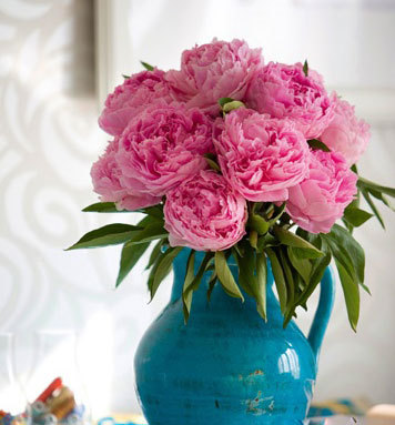 氛圍:粉色芍藥花搭配孔雀藍的瓷質花瓶,散發出嫵媚和清新氣質,非常適合擺放在以淺色調為主的環境中。