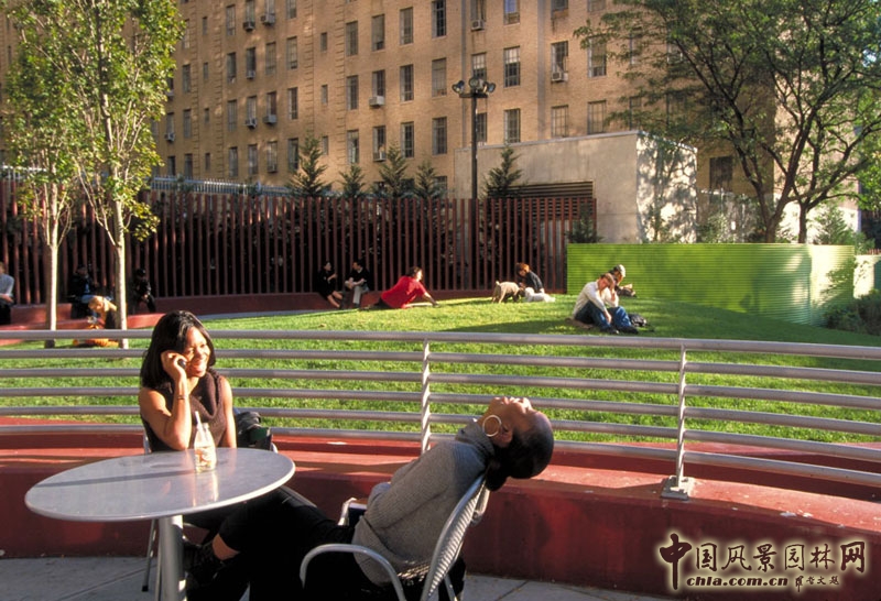 中國風景園林網訊 位于紐約市曼哈頓西區的Balsley公園,曾經是以西非爾德廣場聞名,因年久失修成了一個貧瘠無生物的廣場,現在已轉變成一個特別受歡迎的公園。紐約著名景觀設計公司Thomas Balsley Associates(TBA)承擔設計,建造成一個全新的公園吸引廣泛的青睞者,空間包括花壇、幼兒游樂區、有遮陽的座椅、陽光普照的草坪、咖啡座和一個每周兩天的綠色購物市場,中間通過簡潔的交通小道連接。新的設計為附近社區樹立了一個新面孔。