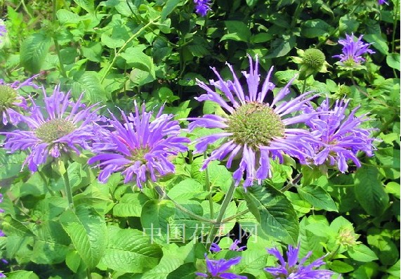 美國(guó)薄荷唇形科美國(guó)薄荷屬多年生宿根花卉,株形直立,花期6月至8月,花大色艷,有粉、紅、紫等色,全株具薄荷清香,觀賞性強(qiáng)。其生性強(qiáng)健、喜陽(yáng)、少病蟲(chóng)害,為體量偏大的宿根花卉,屋頂綠化中沿路種植成花帶效果突出。