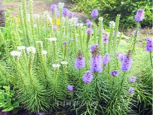 蛇鞭菊菊科蛇鞭菊屬多年生宿根花卉。花紅紫色,花色清麗,夏、秋可開(kāi)兩季花,其花由多數(shù)小頭狀花聚集成長(zhǎng)穗狀花序,花莖挺立,是難得的豎線條花材,在植物配置時(shí)利于設(shè)計(jì)出層次感,富躍動(dòng)性。蛇鞭菊喜光、耐寒、耐熱,南北方均可以種植。在花園型屋頂綠化中,蛇鞭菊恬靜宜人的花色能給人以靜謐與舒適的感覺(jué),可以作背景,也可以用作焦點(diǎn)景觀。