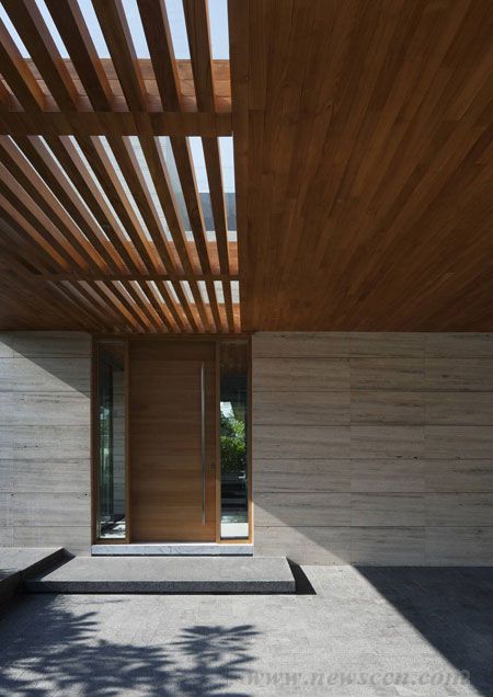 西側厚重的石灰石墻和大塊的垂檐減少了下午陽光的直射。入口處、起居空間和臥室縱向排列,有助于自然交叉通風和光照的進入。為了盡可能利用土地,四層樓的房屋有一層是位于地下的。花園和水景遍布于房屋四處,底層的起居間和餐廳則面朝泳池和一座魚塘。